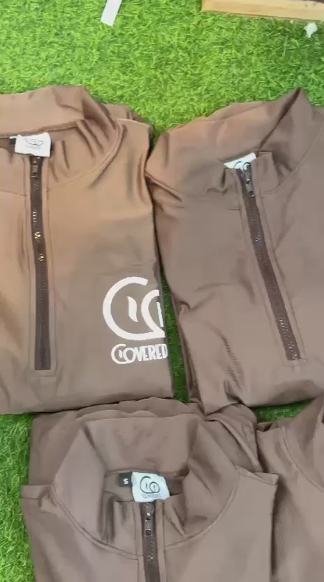 Zahra CoveredFit All-In-One Activewear™ allows you to have flexibility to move in and out of water combined with a comfortable, secure fit. Casual activewear, long sleeve knee length top with hijab, Perfect outfit for the modest women Clubwear, Yoga, Running, Workout, Cycling, Skiing, Fitness, Sports or everyday casual wear.